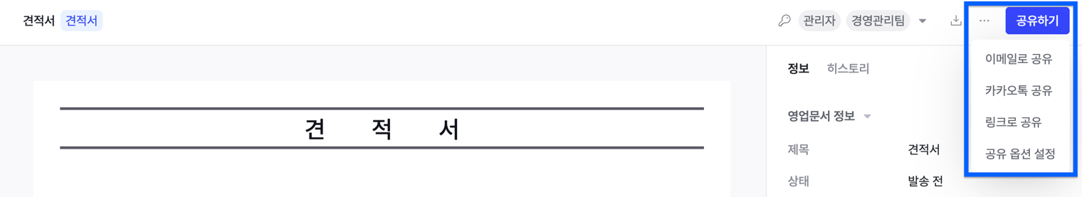[영업 문서] 상세 페이지 > 우측 상단 [공유하기] 버튼