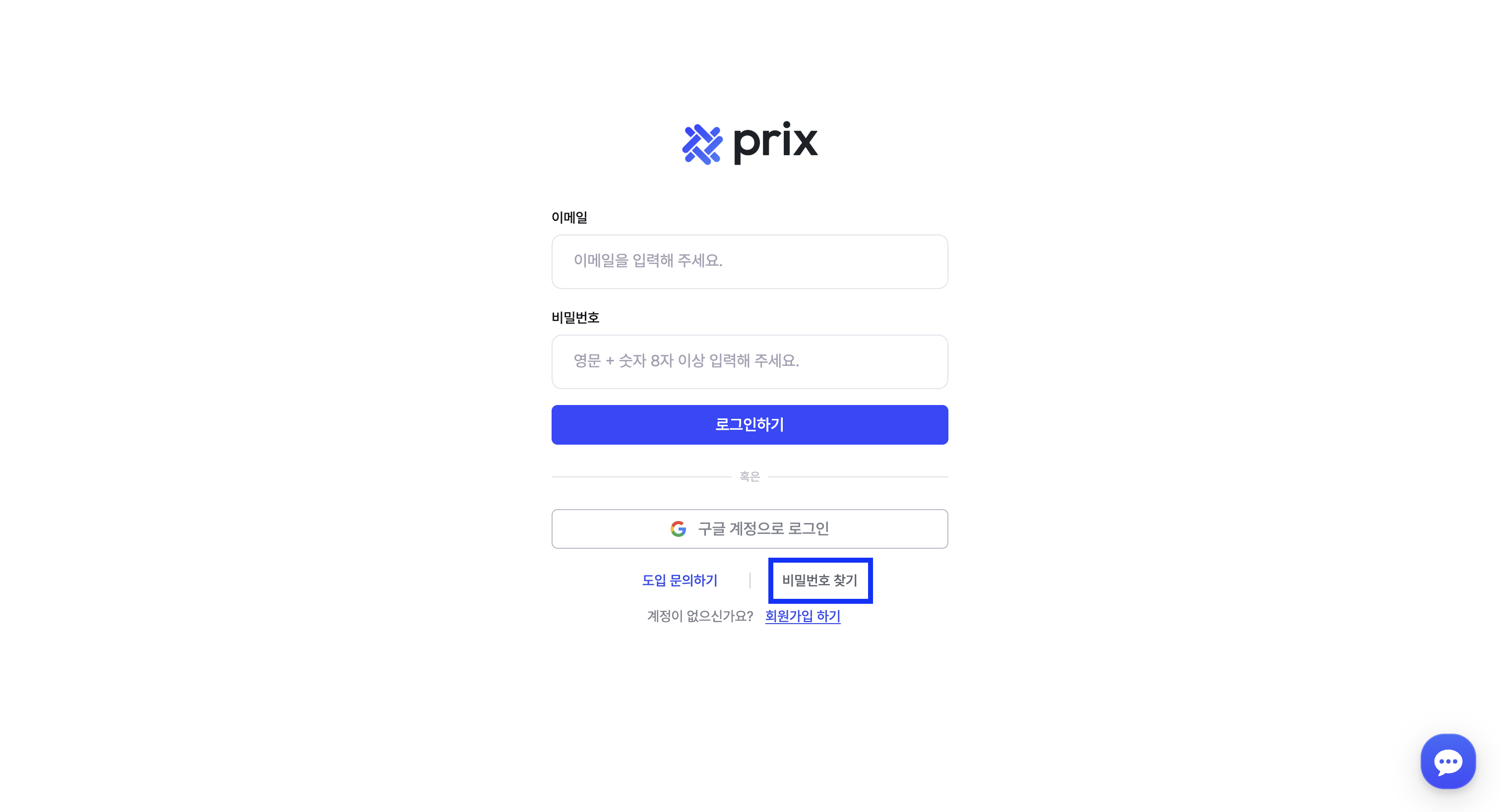 프릭스 로그인 페이지 내의 비밀번호 찾기