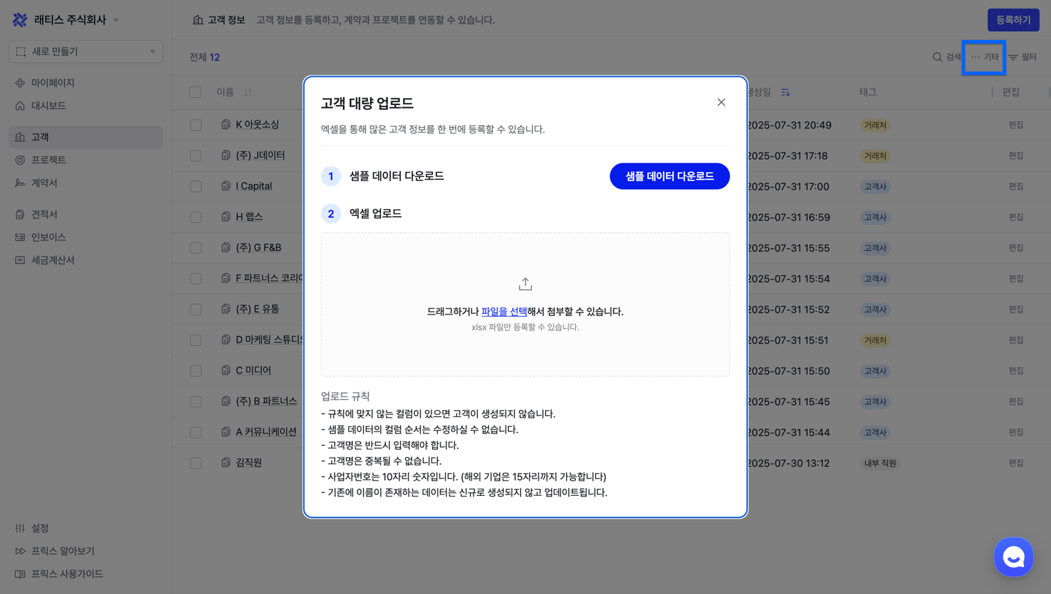 여러 고객을 엑셀 파일로 빠르게 등록할 수 있습니다.