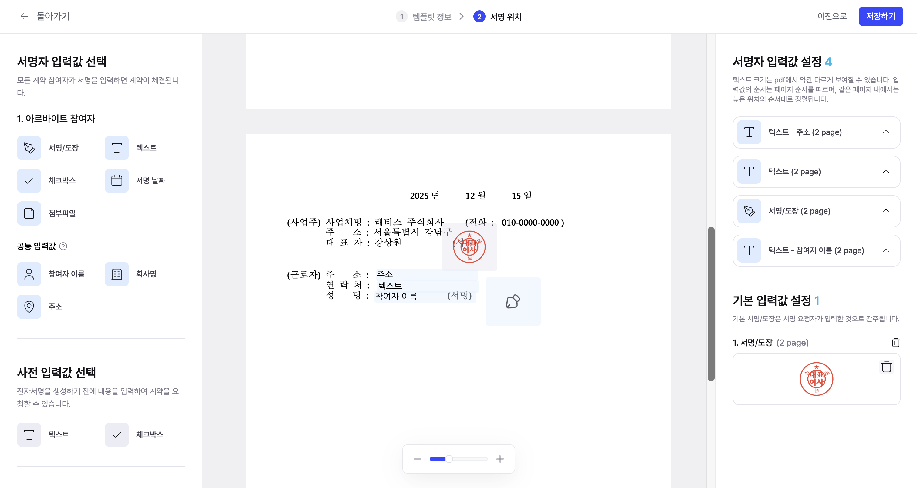 [저장하기] 버튼을 클릭해 전자서명 템플릿을 저장할 수 있습니다.