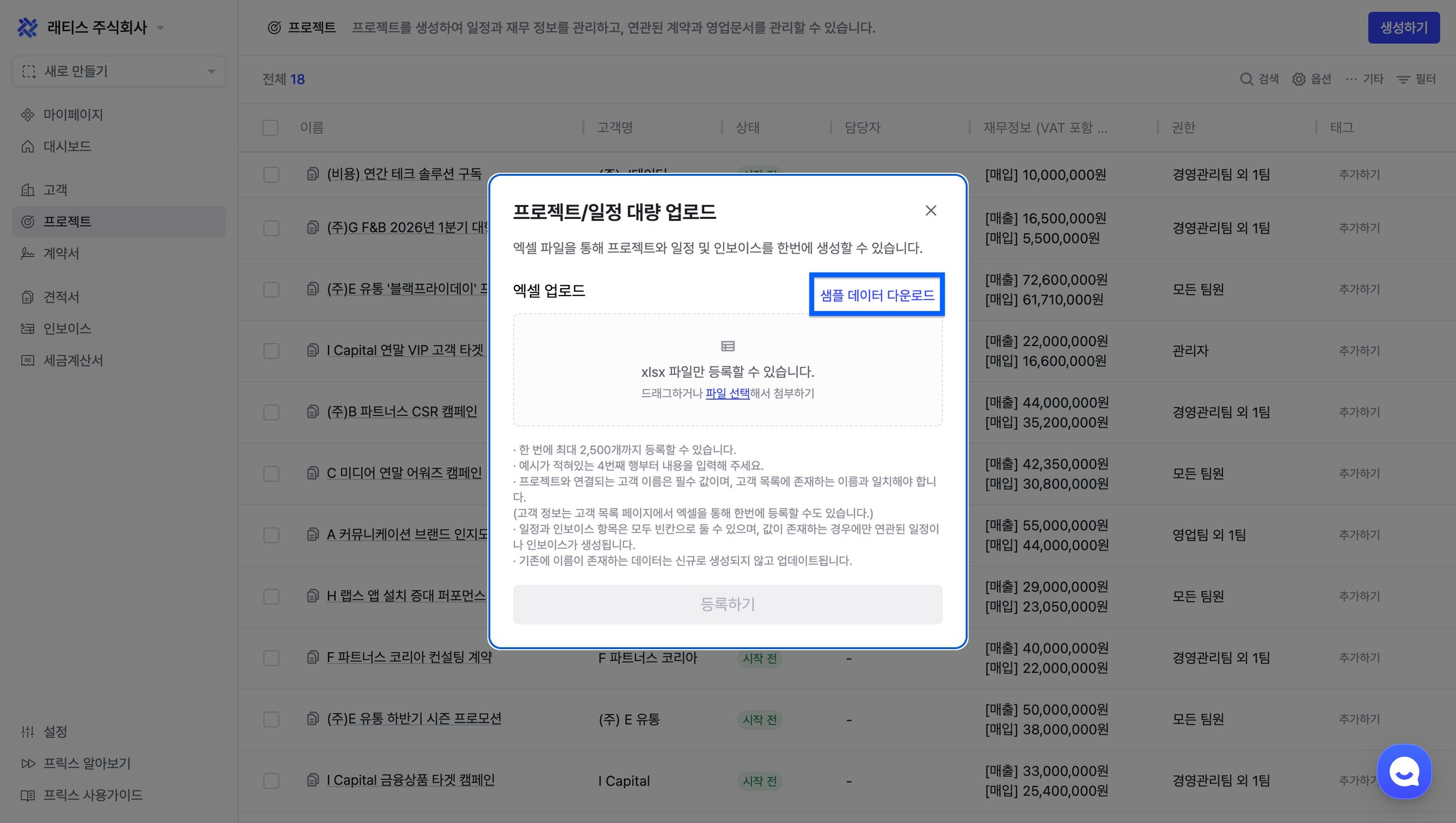 프로젝트/일정 대량 업로드