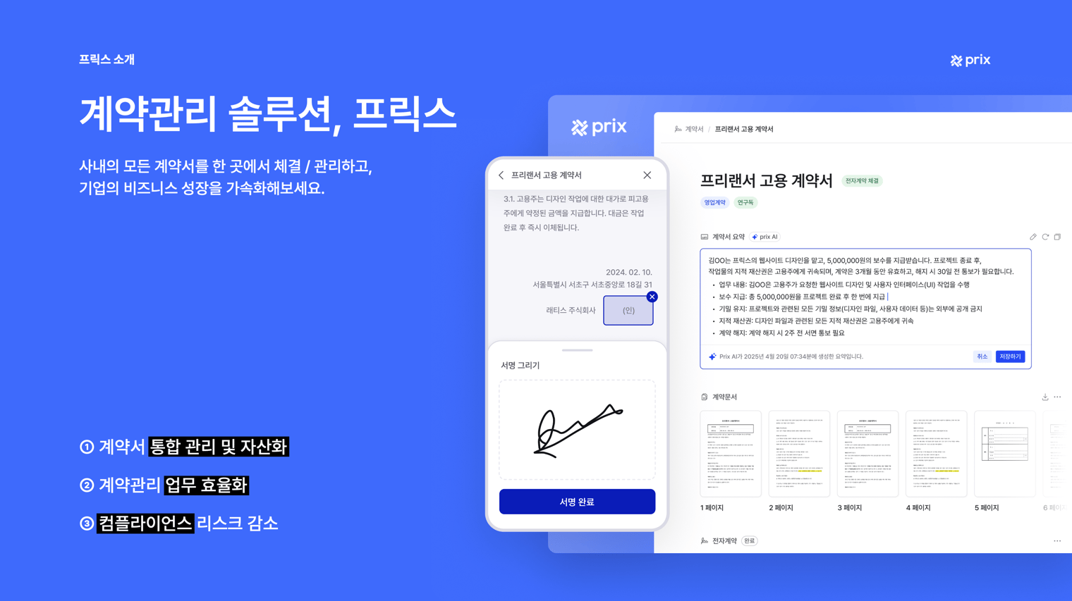 프릭스는 전자계약을 체결하고, 사내 계약 데이터를 쉽게 관리할 수 있는 솔루션입니다.
