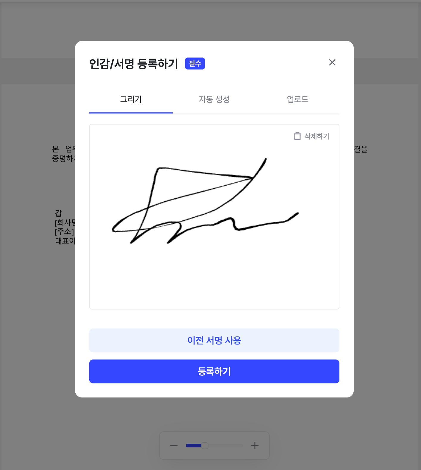 인감/서명 등록하기 창